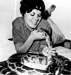 Ina Jane Wundram poses with her snake, Kaa, in 1964.