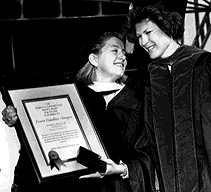 Laura Sawyer accepts the Marion Luther Brittain Award, the University's highest student honor, from Vice President and Dean of Campus Life Frances Lucas-Tauchar.